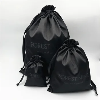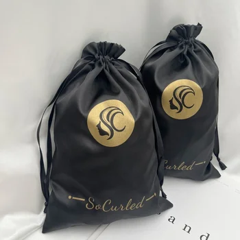 Wholesale Satin Favor Bags Customized Drawstring Satin Hair Hats Bags Black Silk Satin Hair Extension Pouch Wigs Packaging Bags