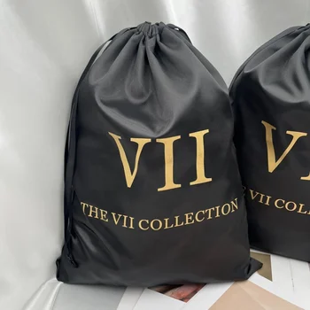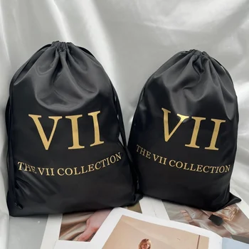 Custom Shiny Black Logo Large Satin Drawstring Pouch for Hair Clothing Wigs Jewelry Small Silk Satin Gift Lash Packing Dust Bag