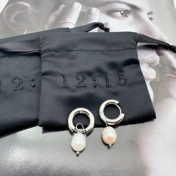 Mini 3" X 3" Black Satin Gift Bags for Fashion Stud Earrings High-density Thickened Satin Jewellery Pouch Bags