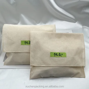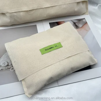 Natural Muslin Cotton Storage Pouch with Flap Bag Envelope Fabric Packaging Bag for Clothing and Handbag