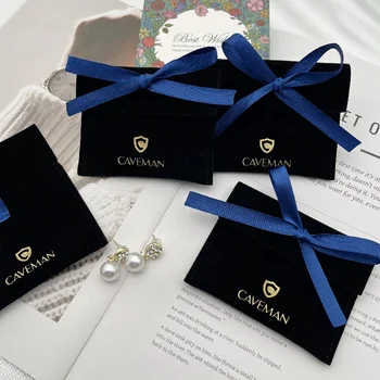 Custom Gold logo Wholesale Velvet Jewelry Packaging Pouch Bag Satin Ribbon Small Velvet Envelope Jewelry Pouch for Ring Earrings