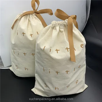 Wholesale Bulk 100% Organic Cotton Canvas Laundry Bag with Logo Eco-friendly Baby Clothes Cotton Garment Drawstring Bags